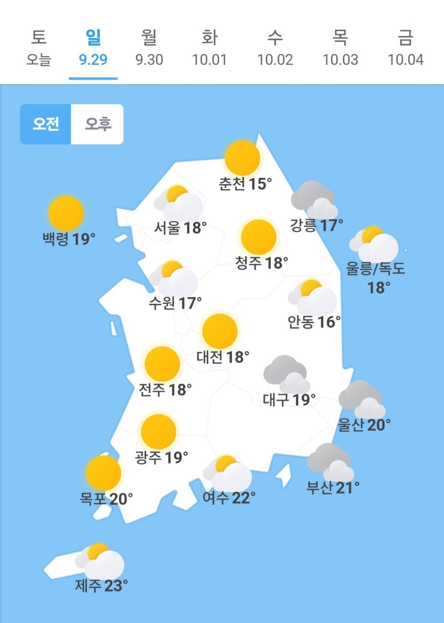 오늘의 날씨 🌞☔️☃️ , 2024년 9월 29일 일요일