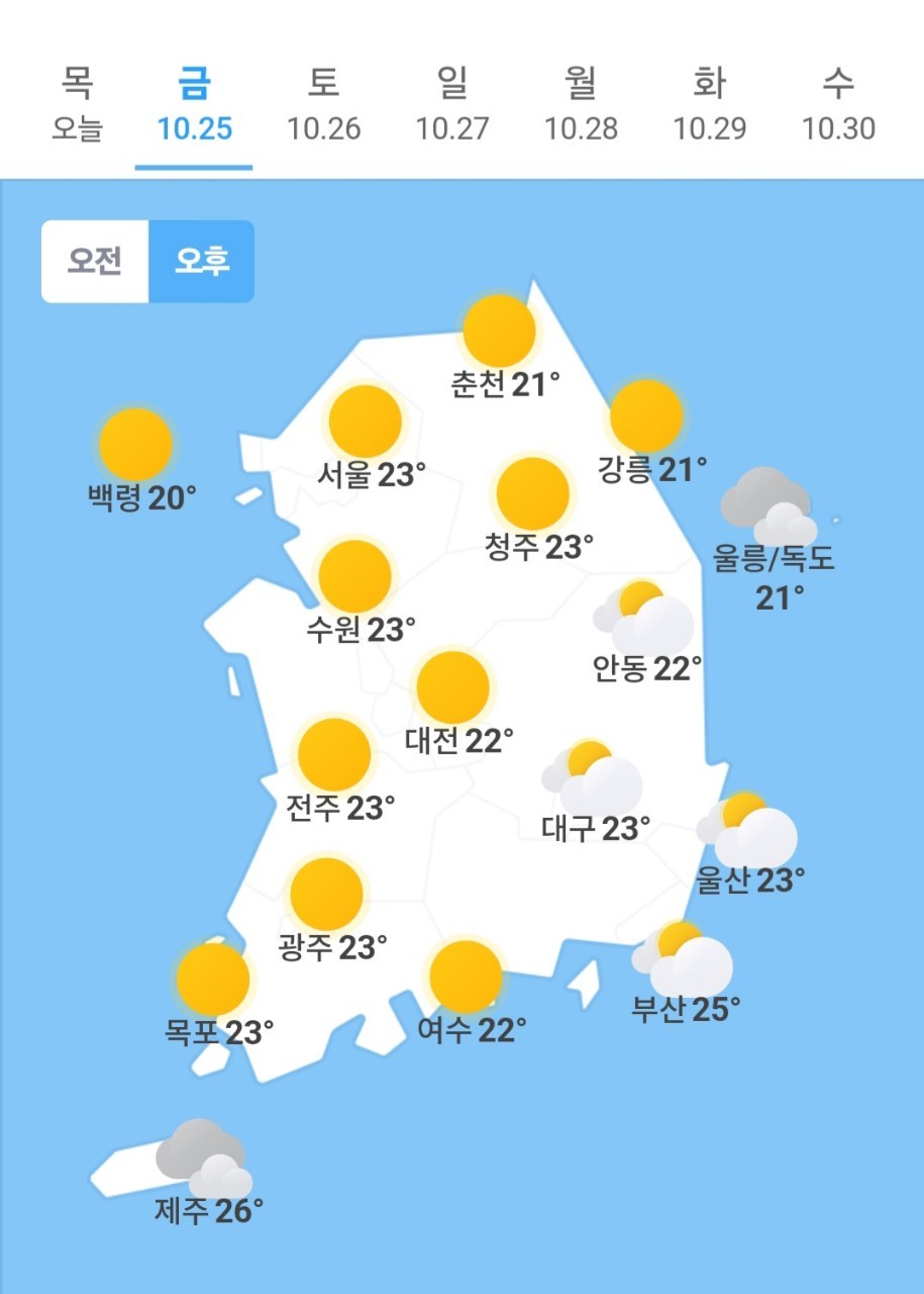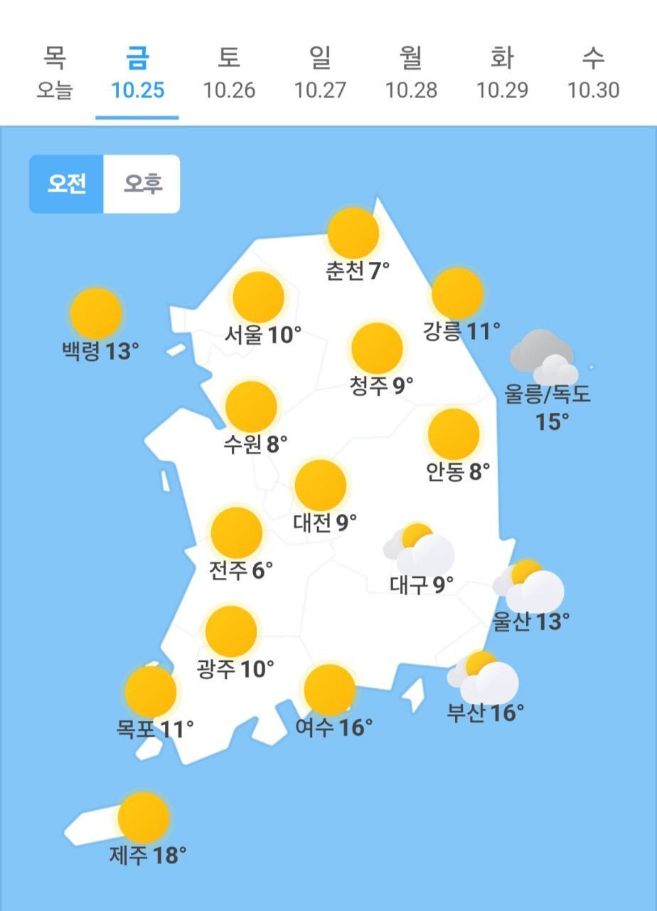 오늘의 날씨 🌞☔️☃️ , 2024년 10월 25일 금요일