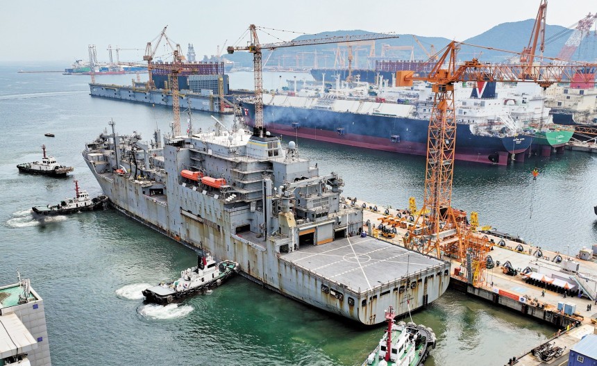 국내 조선 업계가 미 해군 함정을 국내에서 수리한 첫 사례다.
