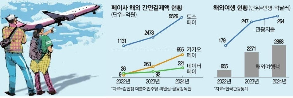 5. 해외여행 수요가 급증하면서 네이버페이, 카카오페이, 토스페이 등 국내 주요 페이 3사의 해외 결제 규모가 지난해 6400억원을 넘어섰습니다.