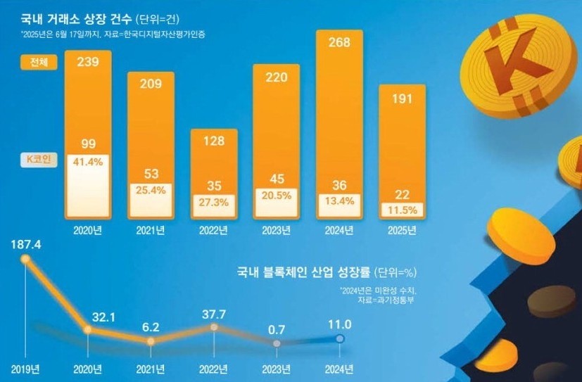 5년 전인 2020년 전체 상장에서 약 절반이 국산 가상자산이었던 걸 고려하면 크게 줄었습니다.