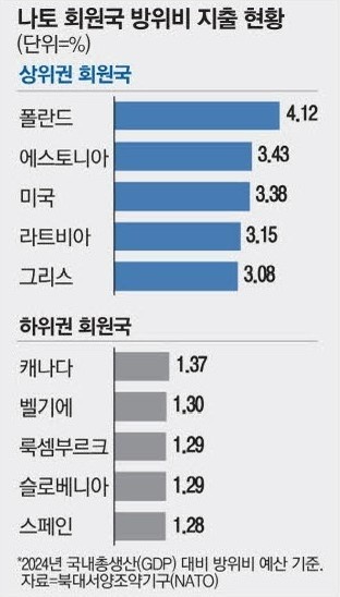 ◇ 나토 ‘GDP 5% 국방비 지침’ 합의···스페인은 빼고