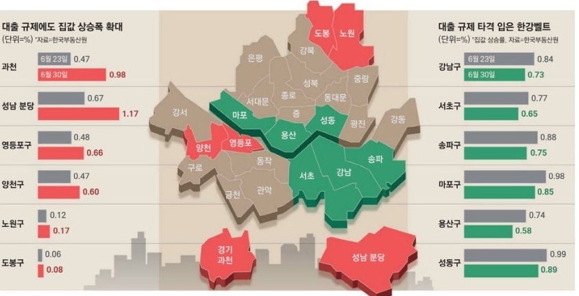 정부의 고강도 대출 규제 시행 이후 서울 아파트값 상승세는 일단 주춤하는 모습입니다.