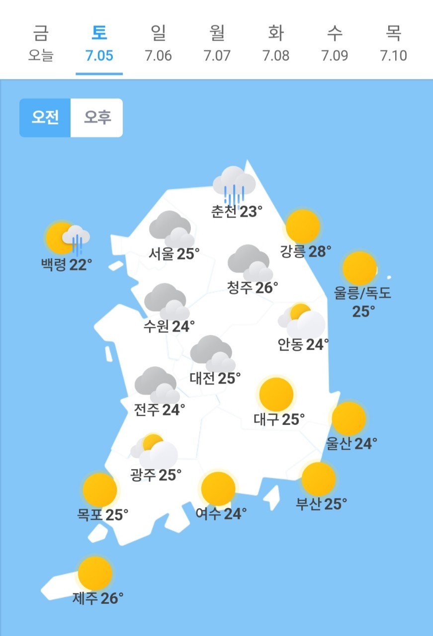 오늘의 날씨 🌞☔️☃️ , 2025년 7월 5일 토요일