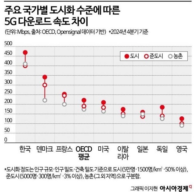특히 농촌 지역의 평균 속도도 모든 OECD 회원국의 도시 지역보다 빨라.