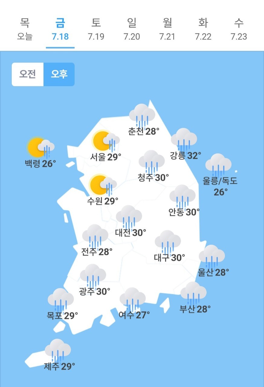 오늘의 날씨 🌞☔️☃️ , 2025년 7월 18일 금요일