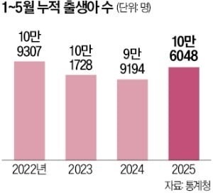 → 통계청 '2025년 5월 인구동향 자료, 5월 출생아 2만 309명으로 지난해 5월보다 741명 증가.