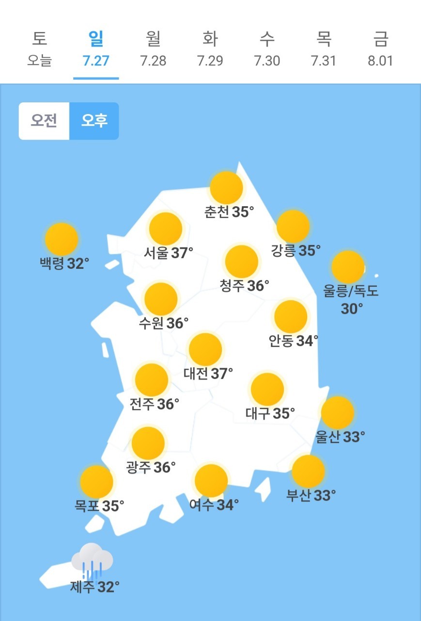 ✫대전(☀)➠(☀) 25℃ ~ 37℃
