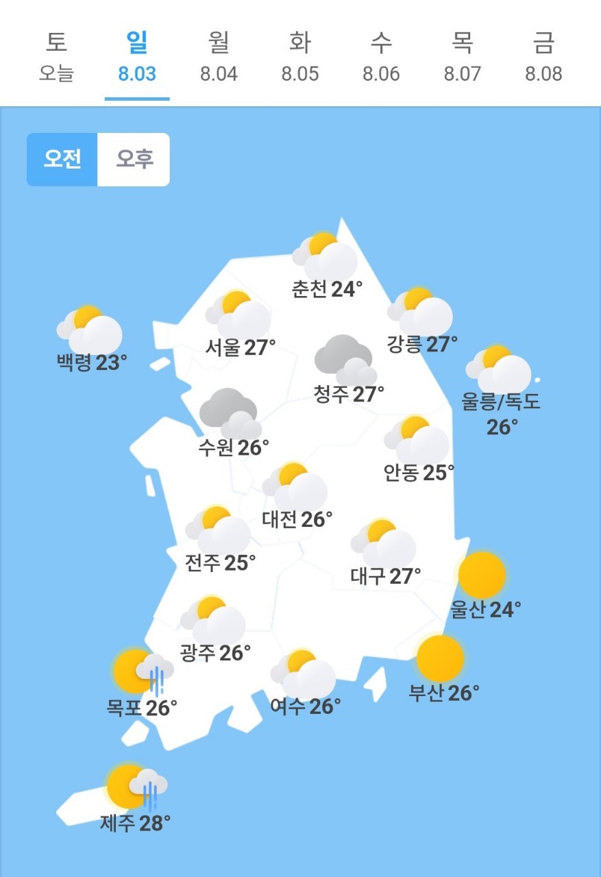 오늘의 날씨 🌞☔️☃️ , 2025년 8월 3일 일요일