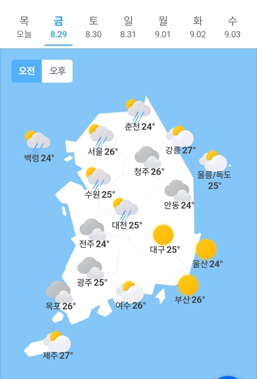 오늘의 날씨 🌞☔️☃️ , 2025년 8월 29일 금요일