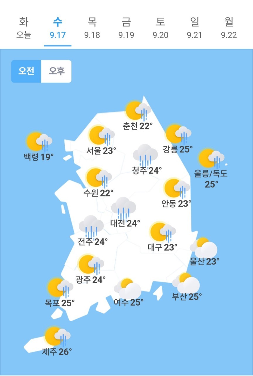 오늘의 날씨 🌞☔️☃️ , 2025년 9월 17일 수요일