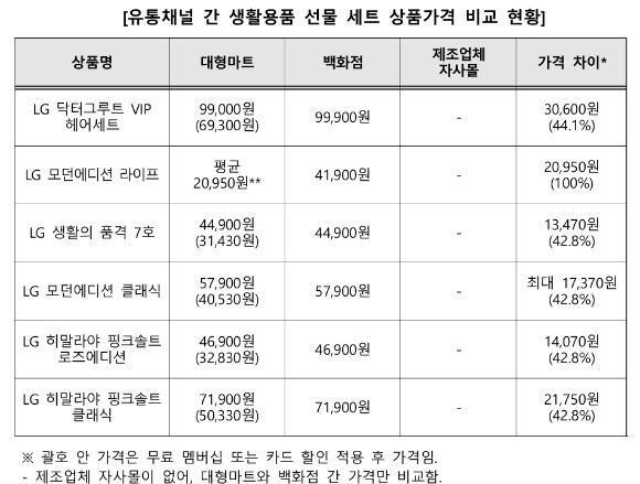 한국소비자원이 유통채널 간 생활용품 선물세트 가격을 비교 조사한 결과 최대 2배 차이가 벌어진 것으로 나타났다. [사진=한국소비자원]