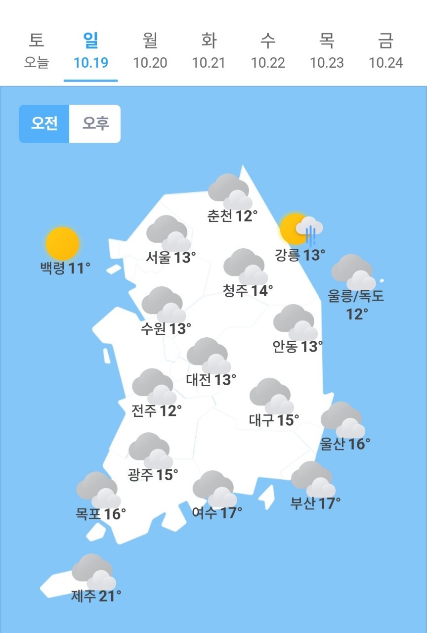 오늘의 날씨 🌞☔️☃️ , 2025년 10월 19일 일요일