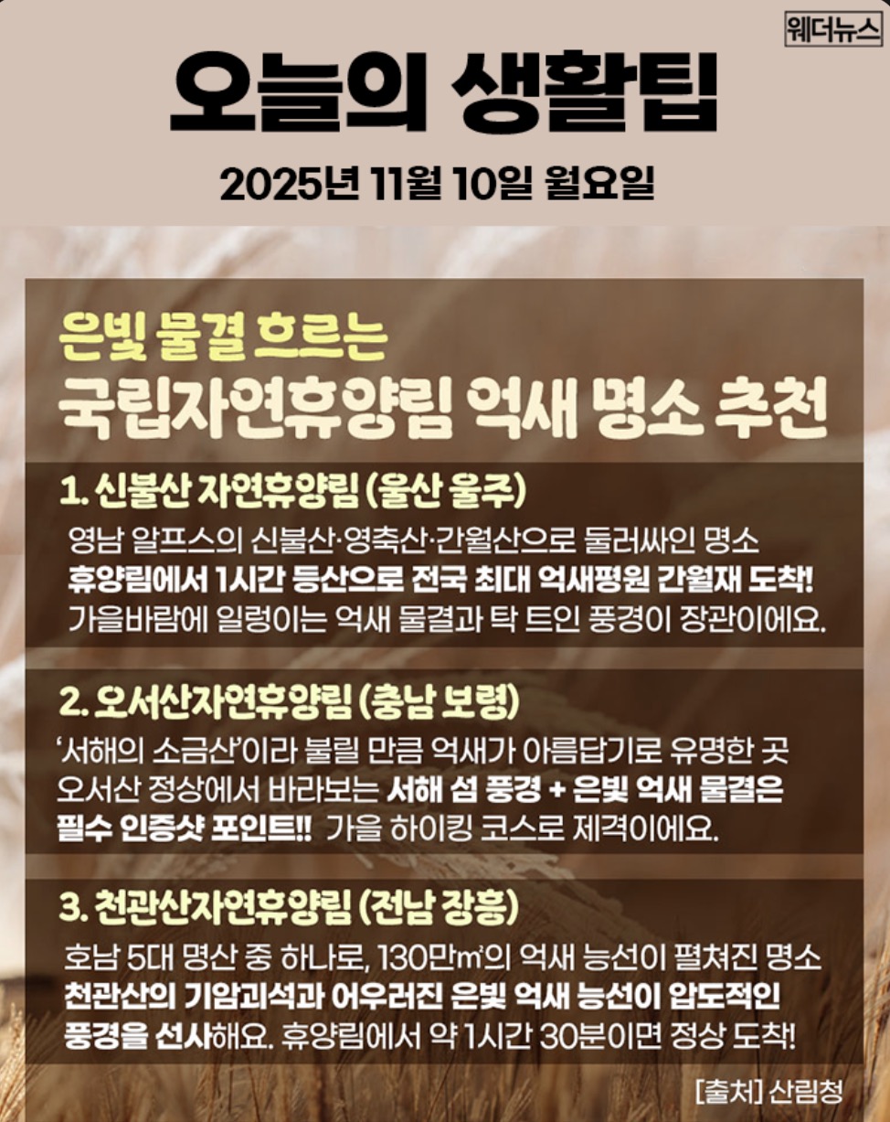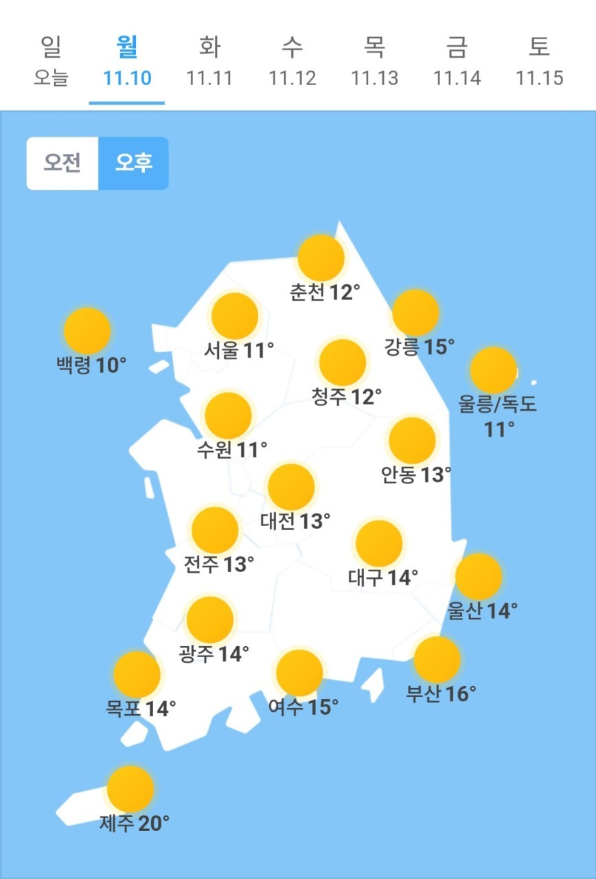 오늘의 날씨 🌞☔️☃️ , 2025년 11월 10일 월요일