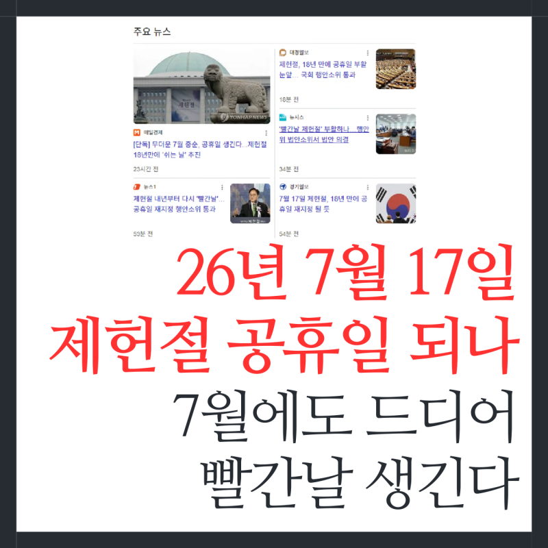 → 제헌절(7.17)을 다시 공휴일로 지정하는 '공휴일에 관한 법률' 개정안 국회 행안위 법안심사소위원회 통과...