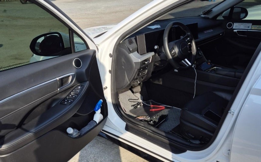◇경찰이 운전석 아래 페달 오조작 방지 장치를 설치하고 있다. 대구경찰청 제공