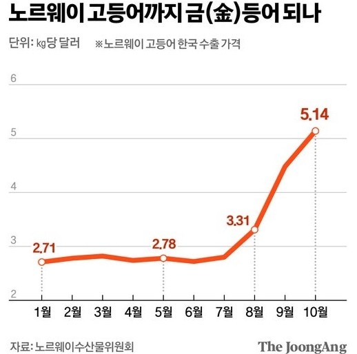 ICES(국제해양탐사위원회)가 어자원 보호를 위해 내년 노르웨이의 고등어 어획 할당량을 70% 감축한 것이 원인.(중앙)▼