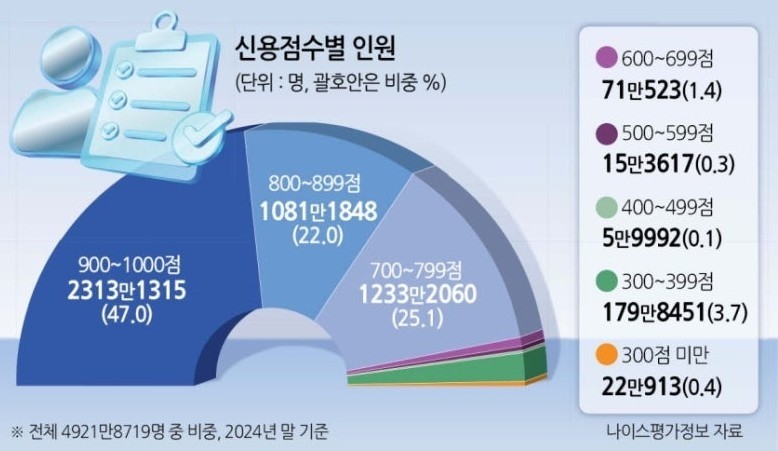 → 국민 2명 중 1명은 1000점 만점에 900점 이상을 받을 정도로 신용점수가 상향 평준화...