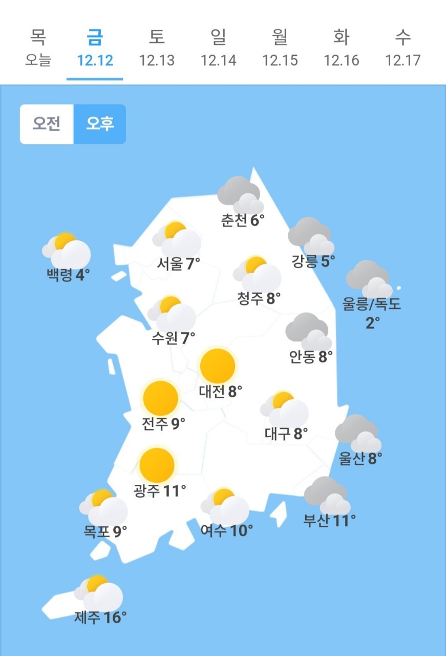 오늘의 날씨 🌞☔️☃️ , 2025년 12월 12일 금요일