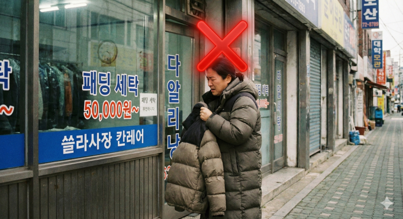 → 드라이클리닝 세제는 거위나 오리털의 ‘유지분’을 녹여 패딩의 숨이 죽거나 열 차단 성능을 크게 저하시킨다.