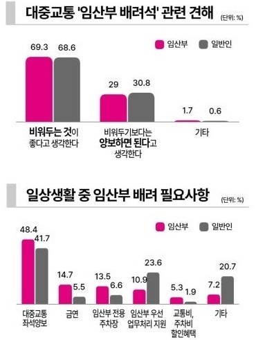 → 반면 임산부의 56%만 배려 받은 적 있다고 응답.