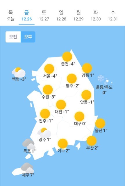 오늘의 날씨 🌞☔️☃️ , 2025년 12월 26일 금요일