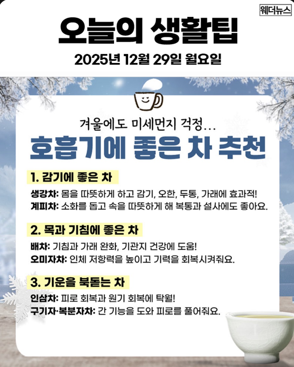 오늘의 날씨 🌞☔️☃️ , 2025년 12월 29일 월요일