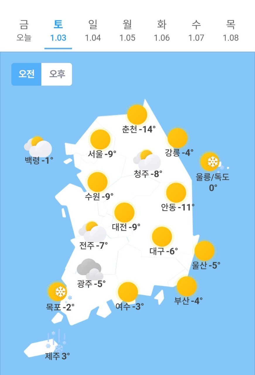✫춘천(☀️)➠(☀️) -14℃ ~ 2℃