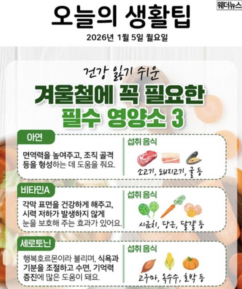 오늘의 날씨 🌞☔️☃️ , 2026년 1월 5일 월요일