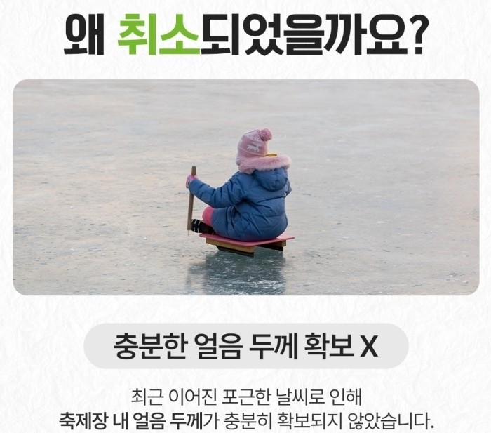 → 30만명 찾던 ‘2026 안동 암산얼음축제’(1월 17일 ~25일 예정) 취소.