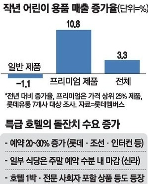 키즈용품 시장에서도 프리미엄 제품은 매출이 10.8% 늘어난 반면 일반 제품은 1.1% 감소(롯데유통 기준).(국민)