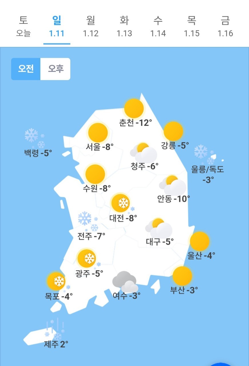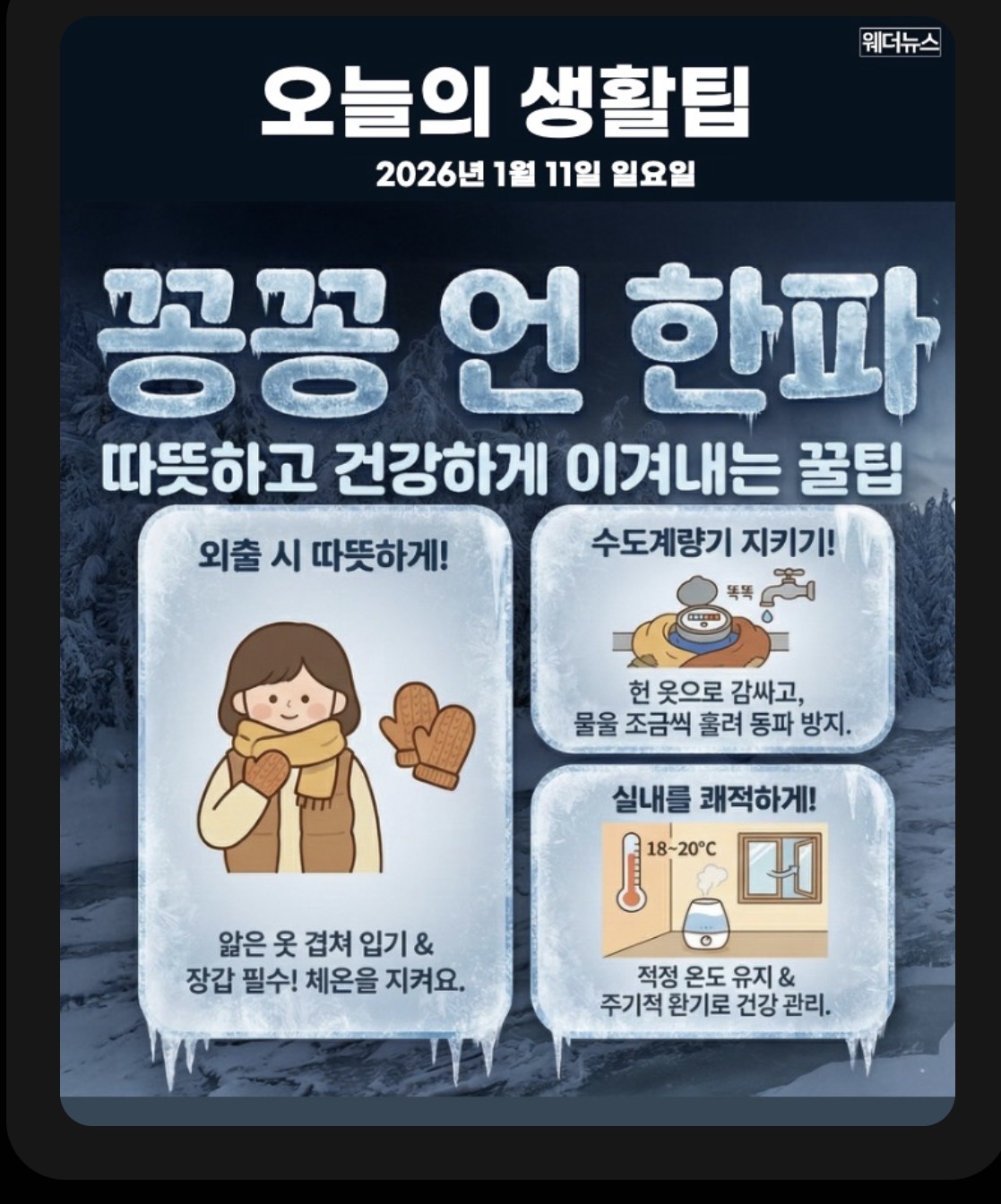 오늘의 날씨 🌞☔️☃️ , 2026년 1월 11일 일요일