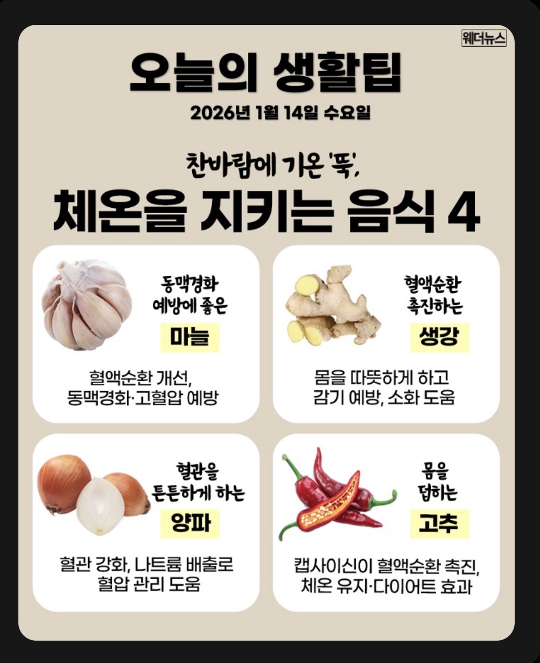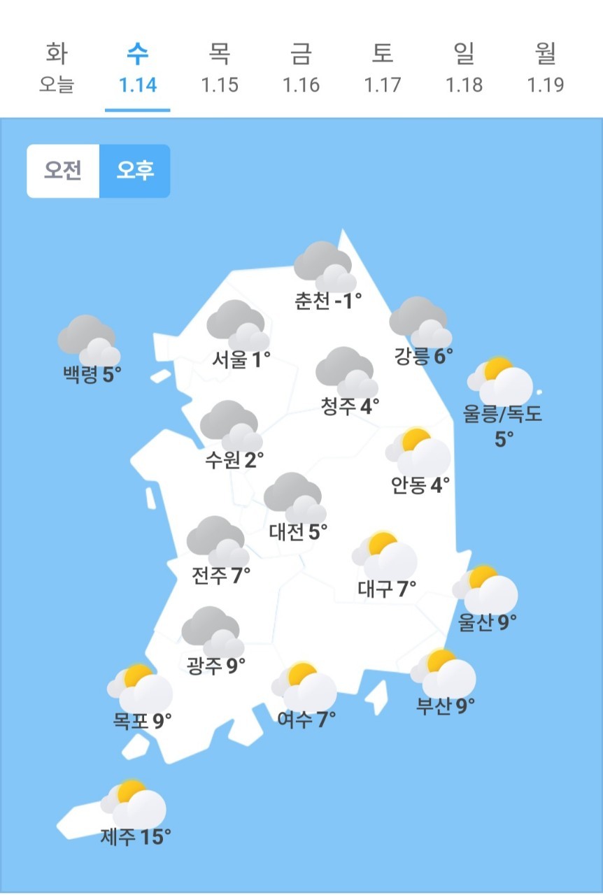 오늘의 날씨 🌞☔️☃️ , 2026년 1월 14일 수요일
