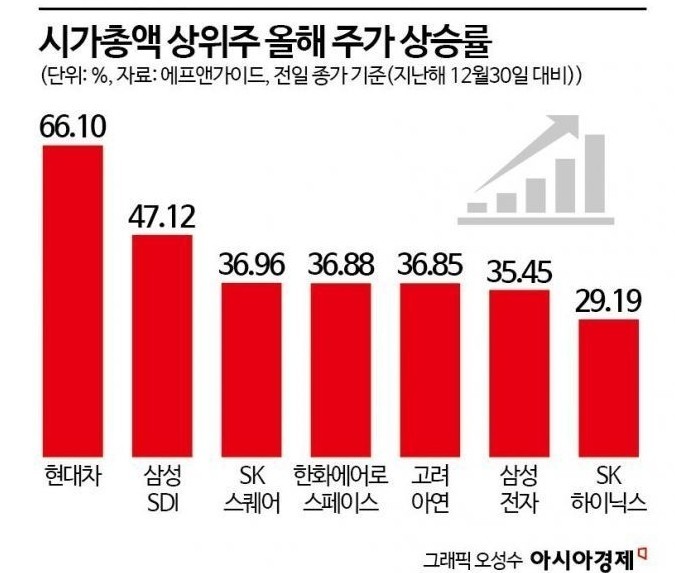올해 상승률 66%, 시총 상위 30개 중 1위