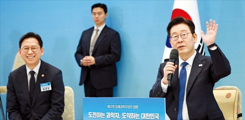 < “과학기술 인재 대체복무 확대” > 이재명 대통령이 5일 청와대 영빈관에서 열린 미래 과학자와의 대화에서 과학기술 인재 대체복무 확대와 군 체제 전면 개편 방침 등을 밝히고 있다.