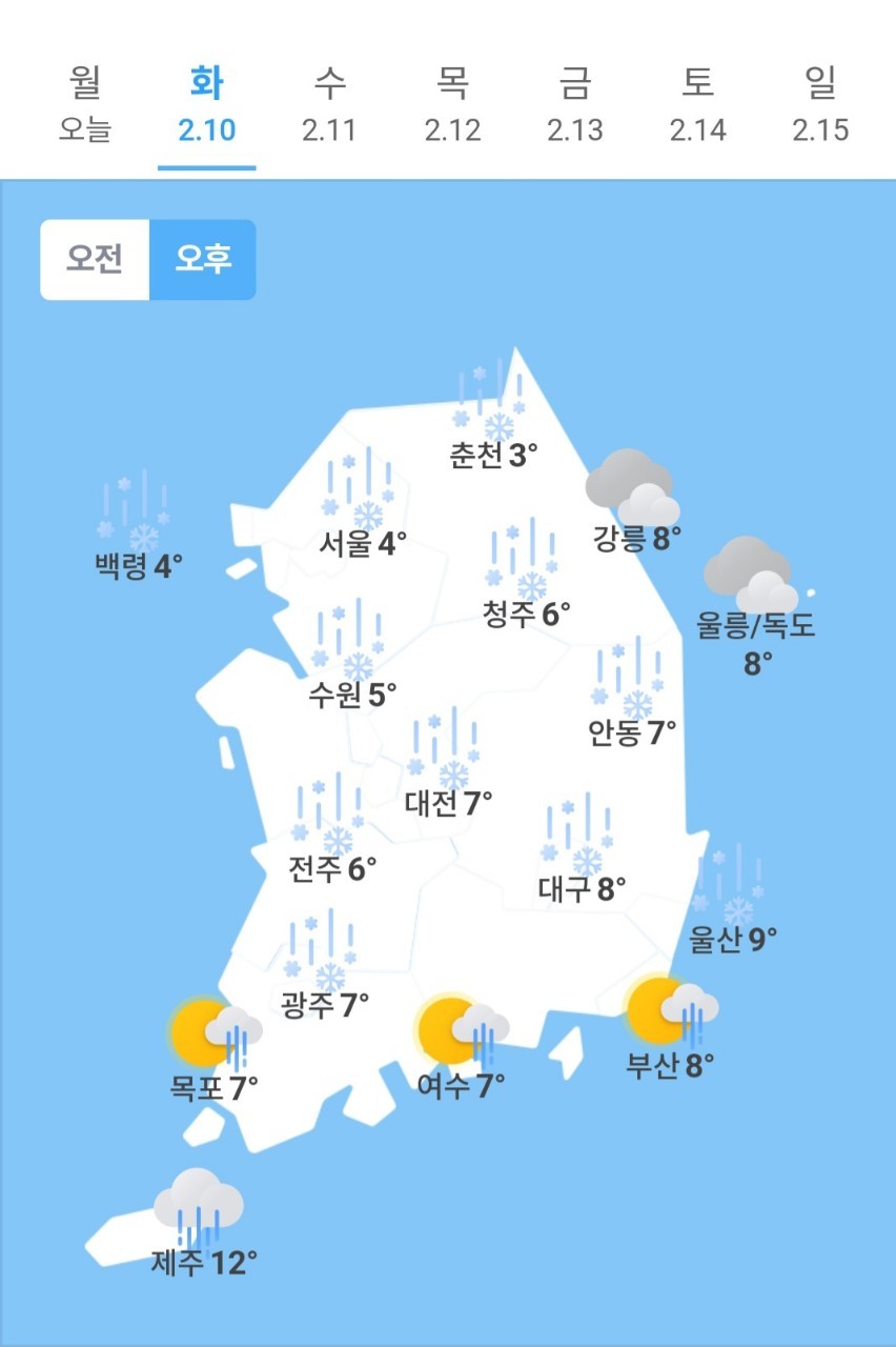 오늘의 날씨 🌞☔️☃️ , 2026년 2월 10일 화요일