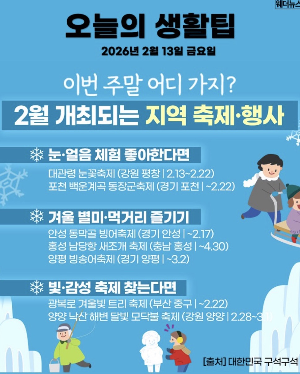 오늘의 날씨 🌞☔️☃️ , 2026년 2월 13일 금요일