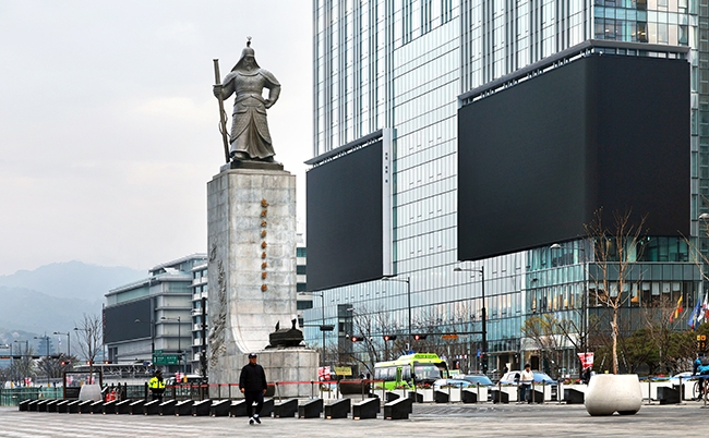 6일 서울 광화문광장에 위치한 대형 전광판이 꺼져있다.